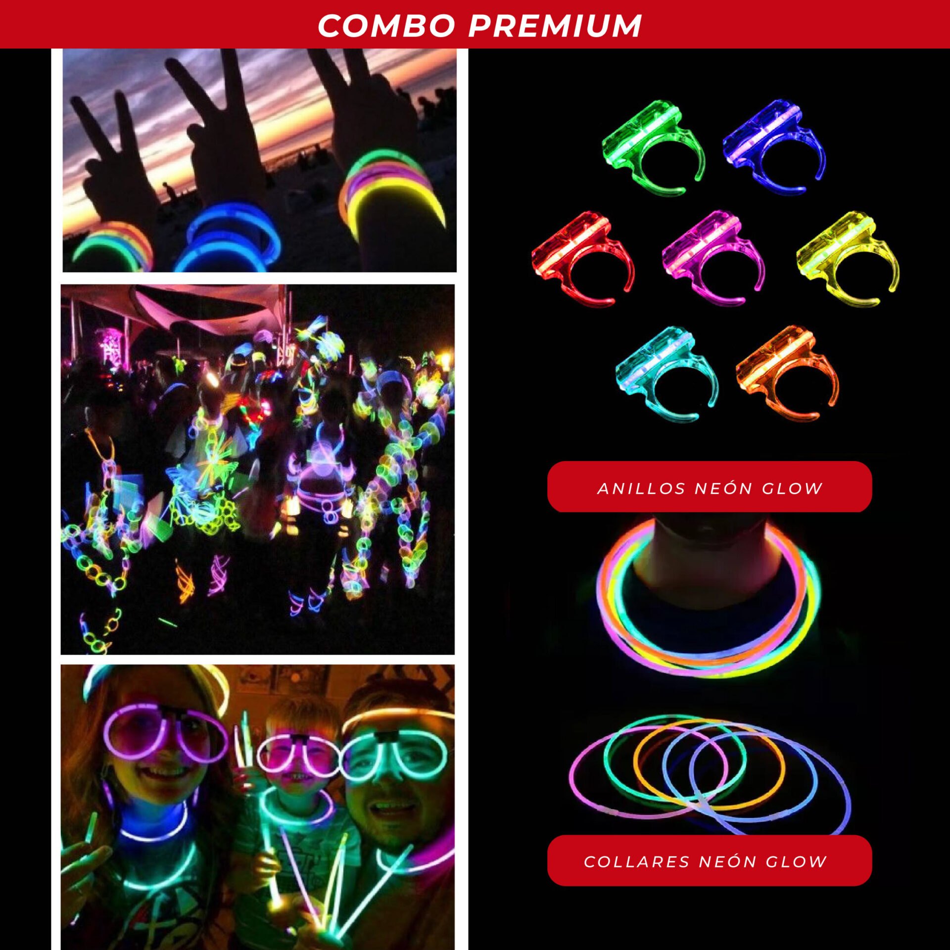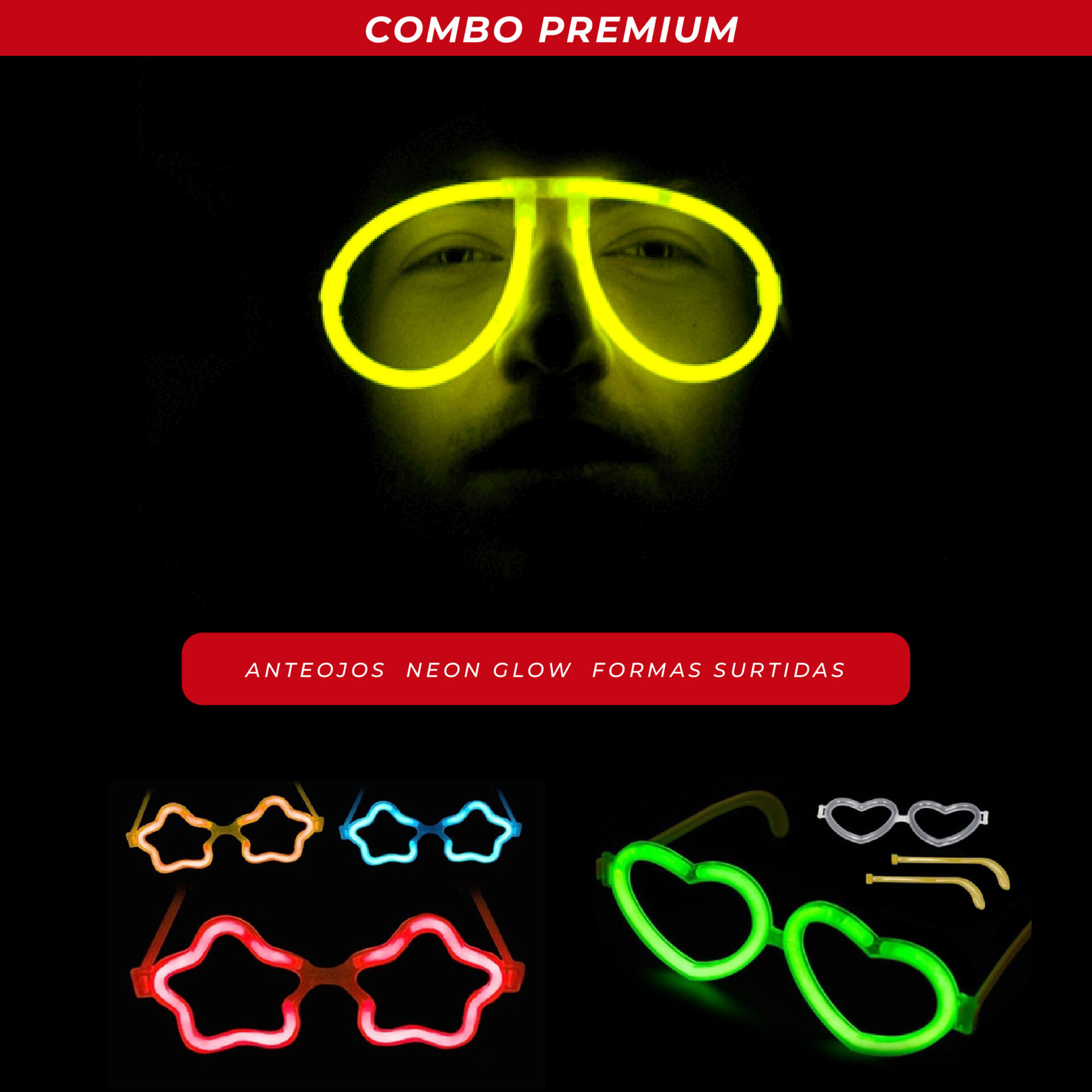 Paquete de fiesta: cotillón químico y led premium