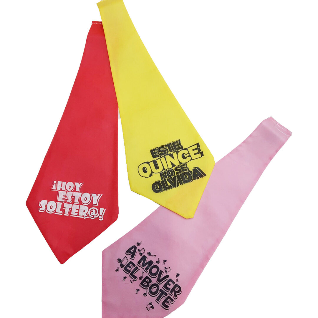 Celebra tu quinceañera con estilo con nuestro exclusivo Pack de 5 Corbatas de Tela. Este pack incluye cinco corbatas de tela en una variedad de colores y diseños divertidos, diseñadas especialmente para tu día especial.