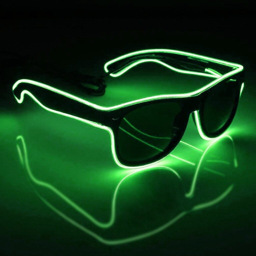 Cada par de anteojos está listo para usar, y una vez activados, comienzan a brillar en la oscuridad, marcando el ritmo de la noche.