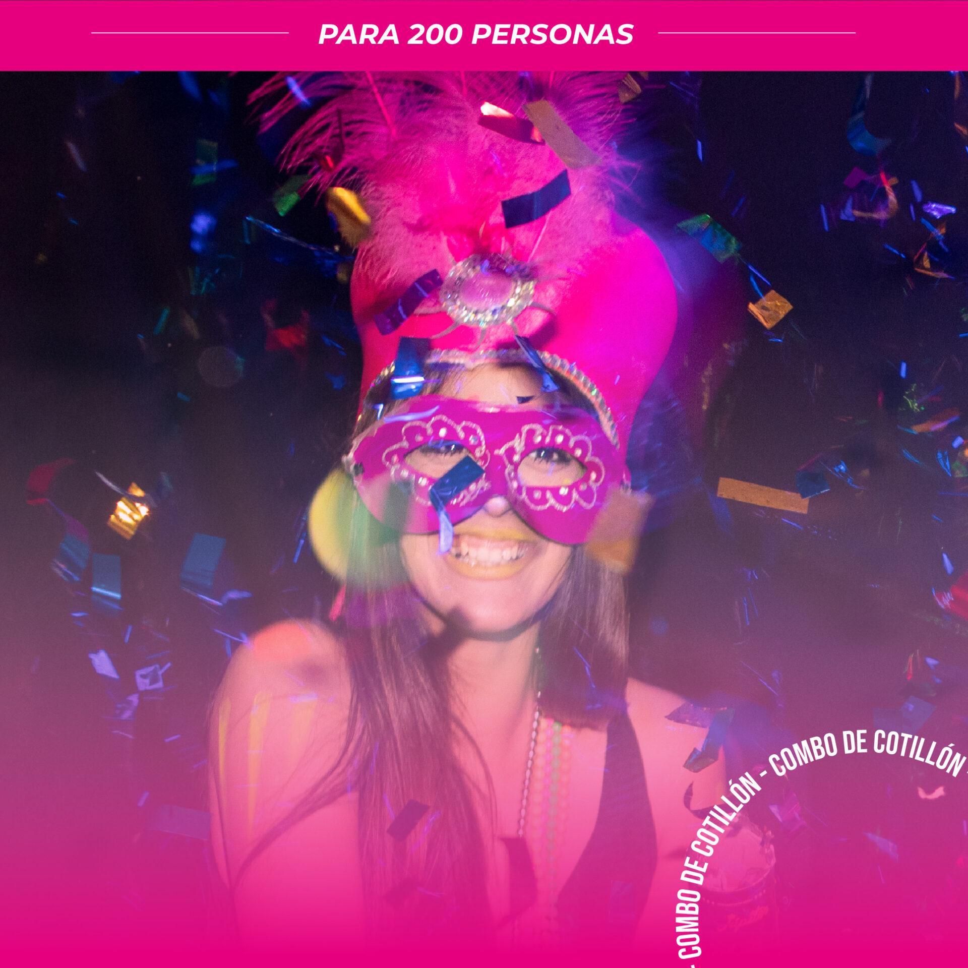 Recomendamos usar este combo para festejar con 200 personas aproximadamente. Este n° de personas es un aproximado, depende de usted considerar cuánto cotillón desee darle a sus invitados según los requerimientos de su evento.