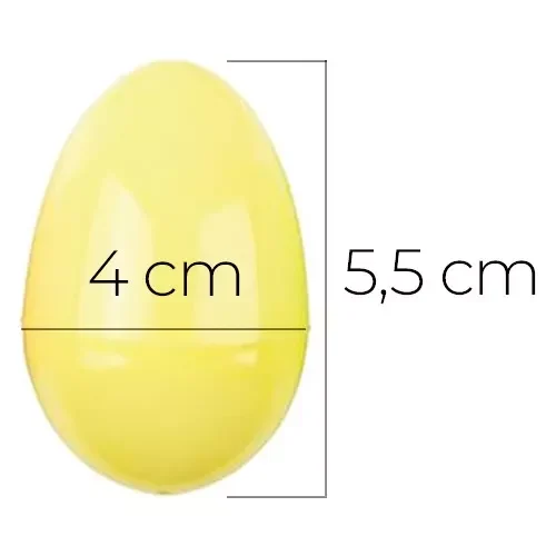 Cada huevo tiene el espacio perfecto para rellenar con caramelos, mini juguetes o mensajes personalizados. De aproximadamente 5,5 cm. de alto x 4 cm. de ancho.