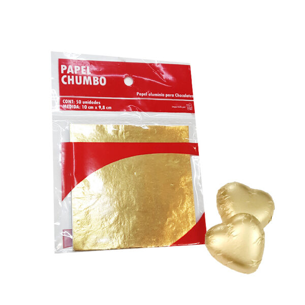Incluya este práctico papel en sus preparaciones y presente sus bombones o dulces de forma profesional. Cada paquete incluye 50 unidades de cuadrados de papel de alumnio o papel chumbo lo que permite usarlo para muchas preparaciones/tandas de creación.
