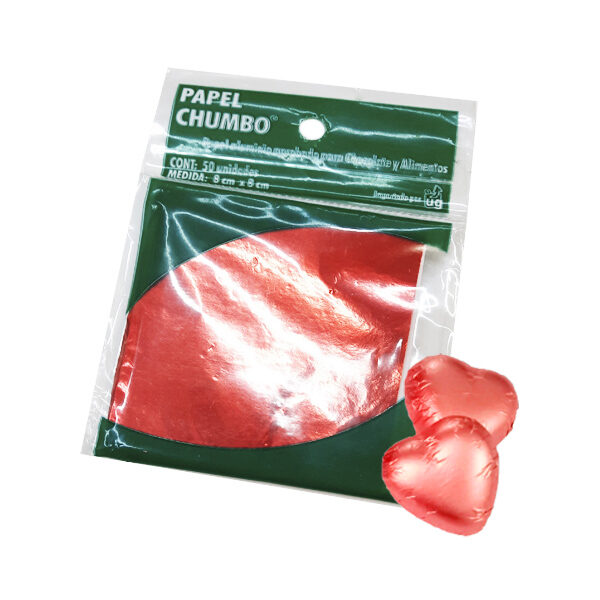 Ponemos a su disposición papel chumbo plateado, rojo y celeste. Cada paquete trae 50 unidades del mismo color, por favor elija el más apropiado para su presentación.