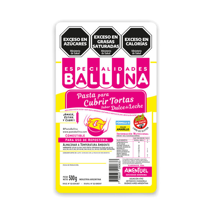 Con la Pasta para Cubrir Tortas Amarilla Ballina 500 gr, tus creaciones lucirán profesionales y llenas de color, sorprendiendo a todos con su sabor y presentación. ✨