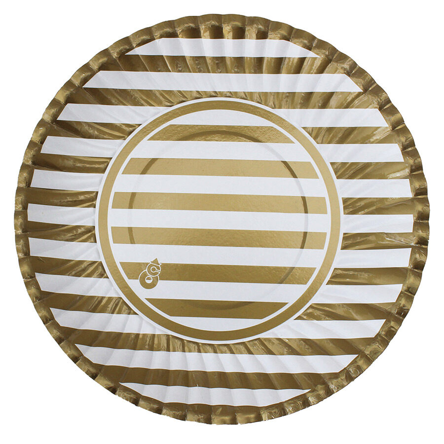Platos de Polipapel Rayas Dorado x 8: elegancia y practicidad para tu mesa festiva