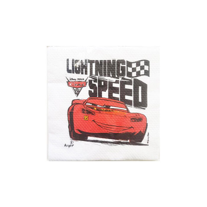 Servilletas Cars Descartables x 12 – ¡Que la velocidad llegue a la mesa! ✨