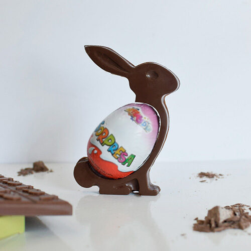 El set está compuesto por 2 Moldes Placas para realizar conejitos de chocolate porta huevos de 7 cm.