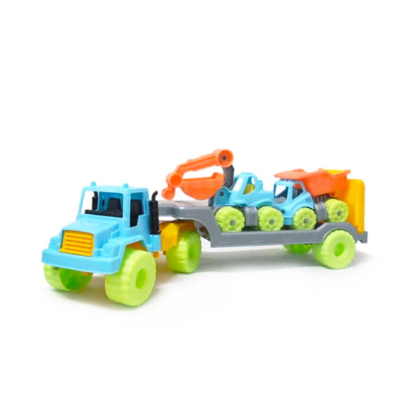 ¡Set de Construcción! Este set incluye tres vehículos de construcción, un camión, una excavadora y un trailer grande, diseñados para que los niños puedan jugar con ellos fácilmente, con un tamaño y peso adecuados para sus manos pequeñas.