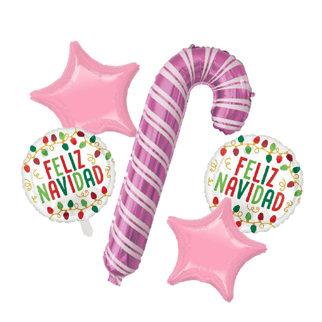 🎄 Set de Globos Bastón Navideño Rosa x5 – Dulzura y brillo para tu Navidad