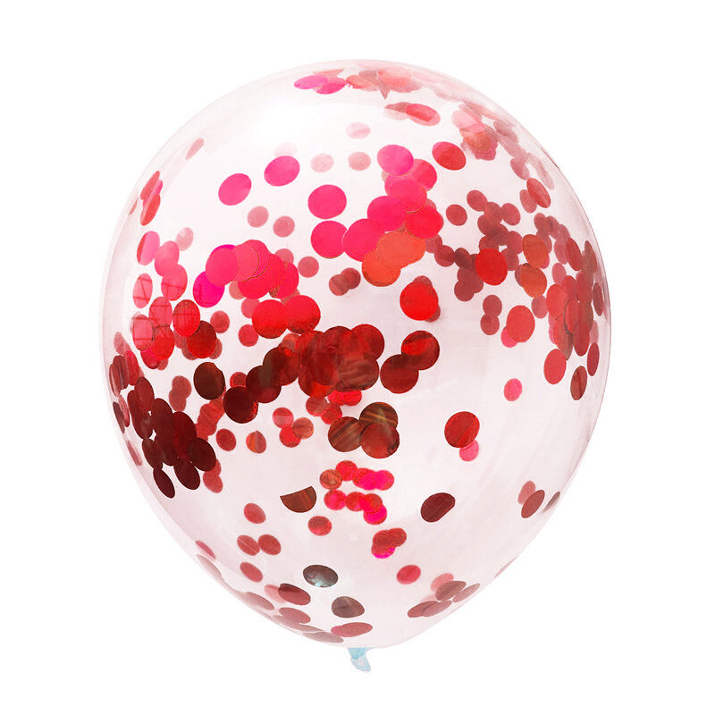 Contiene 5 globos cristal de 12″, confetti rojo y cinta.