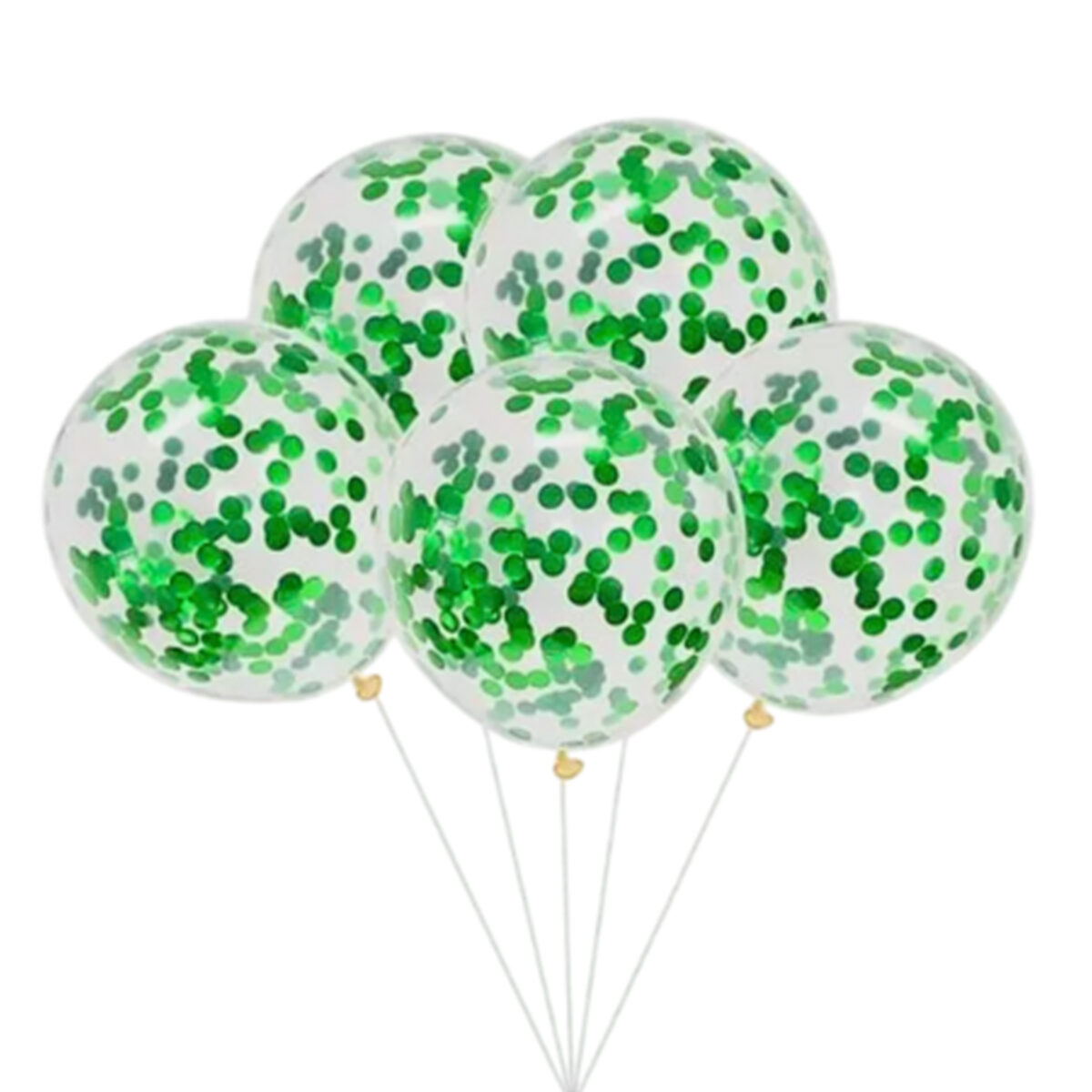 Contiene 5 globos cristal de 12″, confetti verde y cinta.