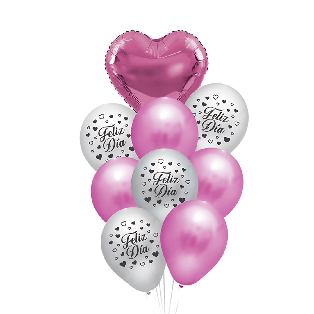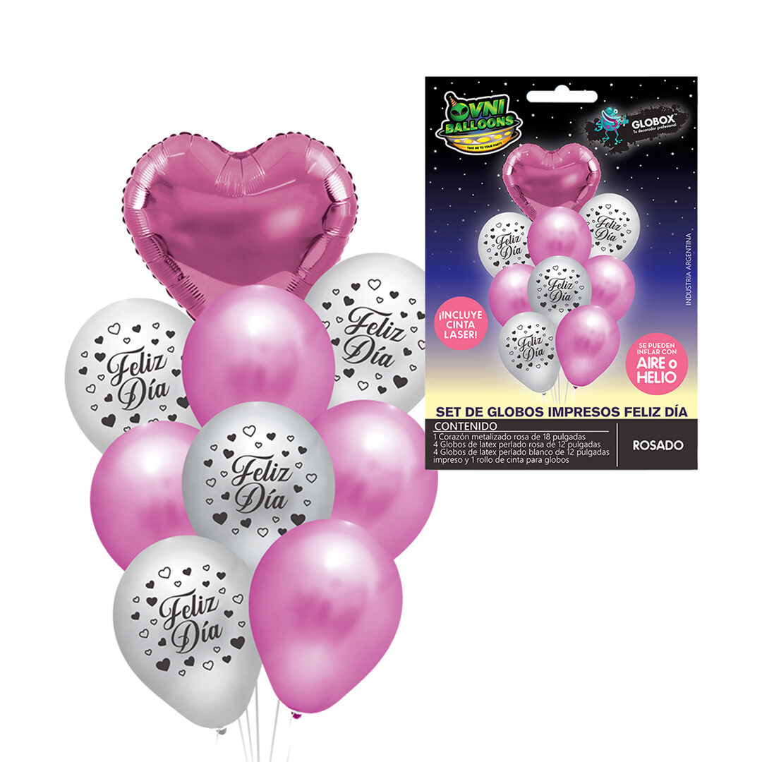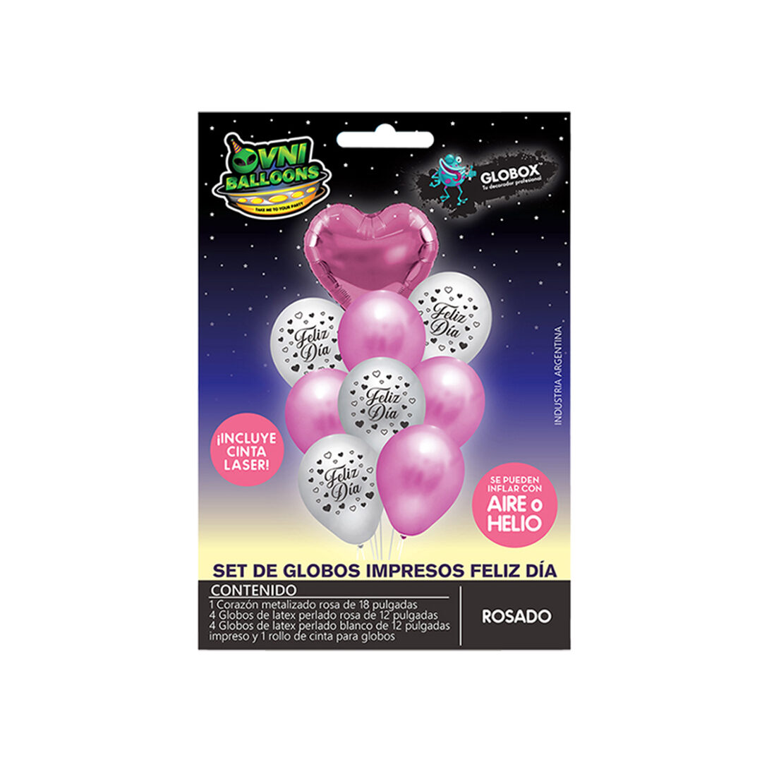 El Set de 9 globos impresos feliz día rosado es la elección perfecta para expresar tus sentimientos en cualquier ocasión especial. Este set incluye globos de alta calidad con diseños románticos que añadirán un toque especial a tus celebraciones. Ideales para aniversarios, San Valentín, cumpleaños y más, estos globos premium crearán una atmósfera inolvidable y llena de amor.
