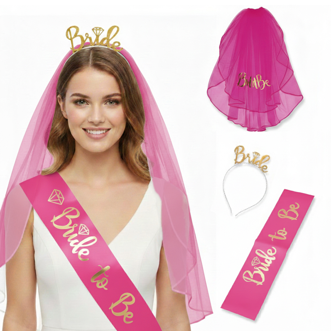 SET NOVIA BRIDE TO BE: VELO, VINCHA MIX FUCSIA