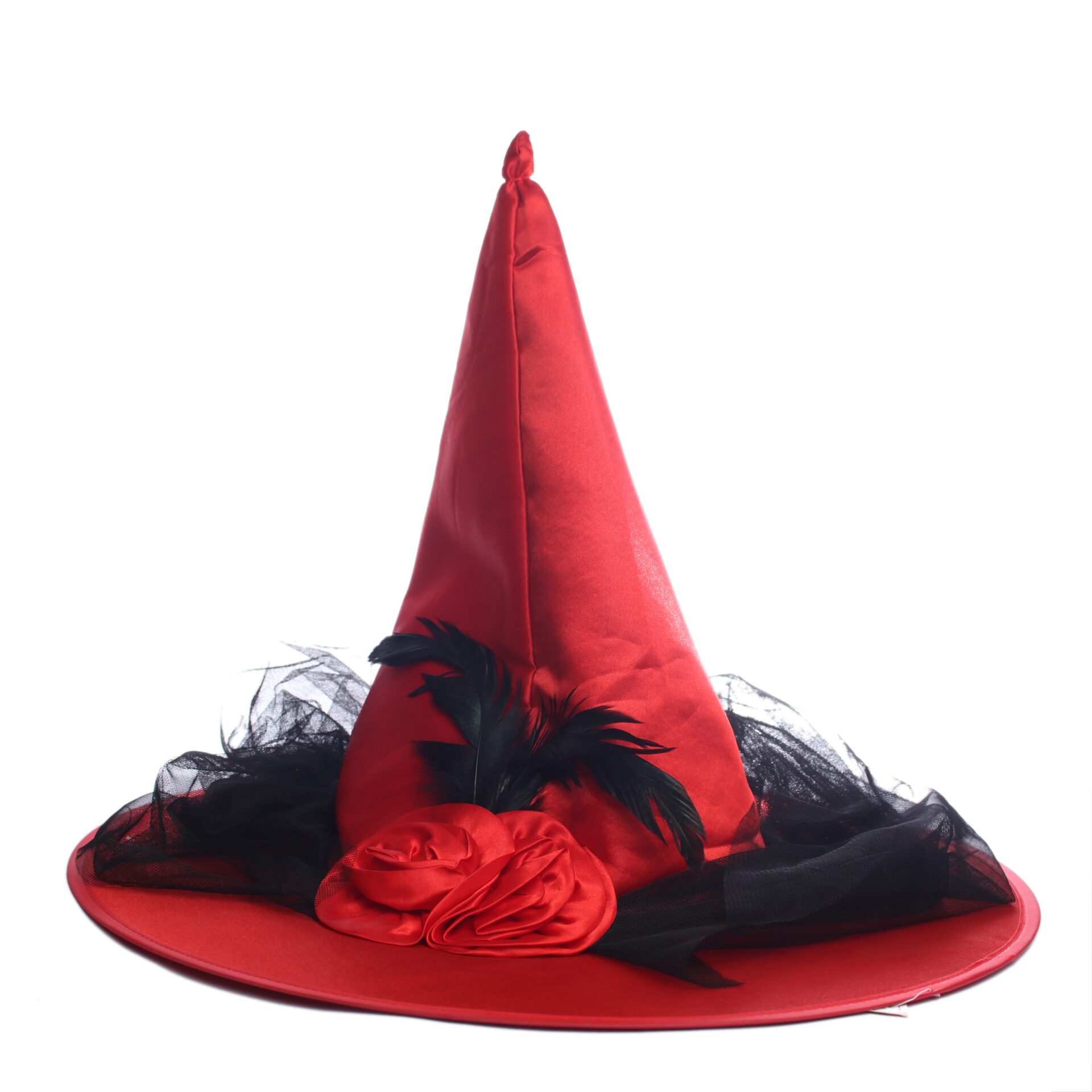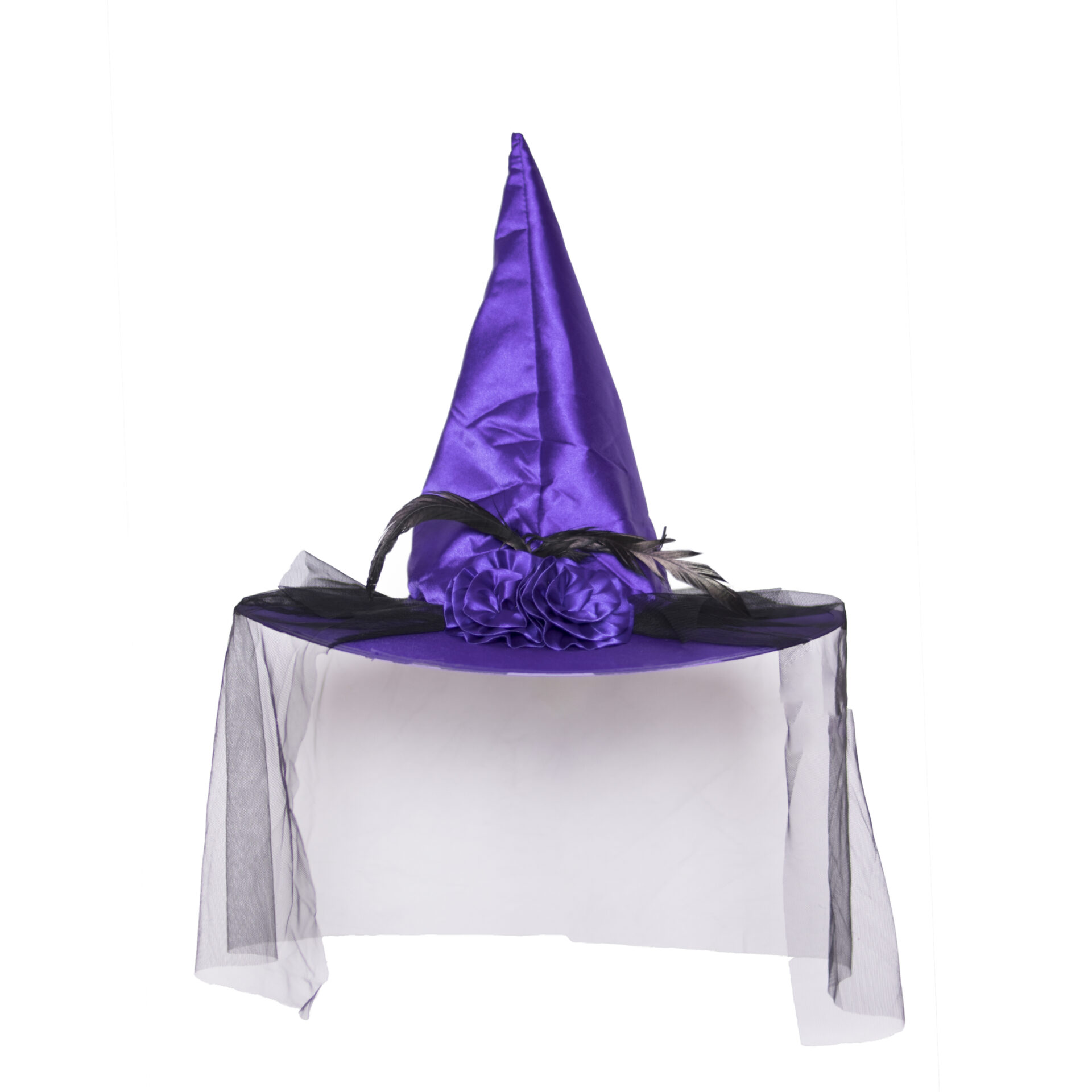 Sombrero de Hechicera con Moño, Plumas y Tul: Ideal para Disfraces y Eventos Temáticos