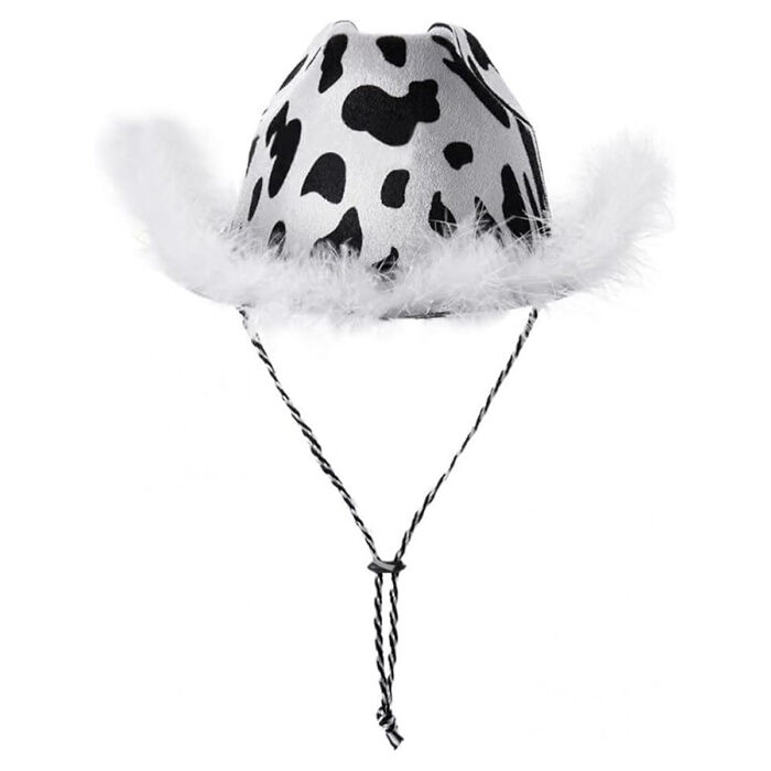 - Diseño único: Sombrero estilo vaquero con estampado animal print con diseño de vaquita.