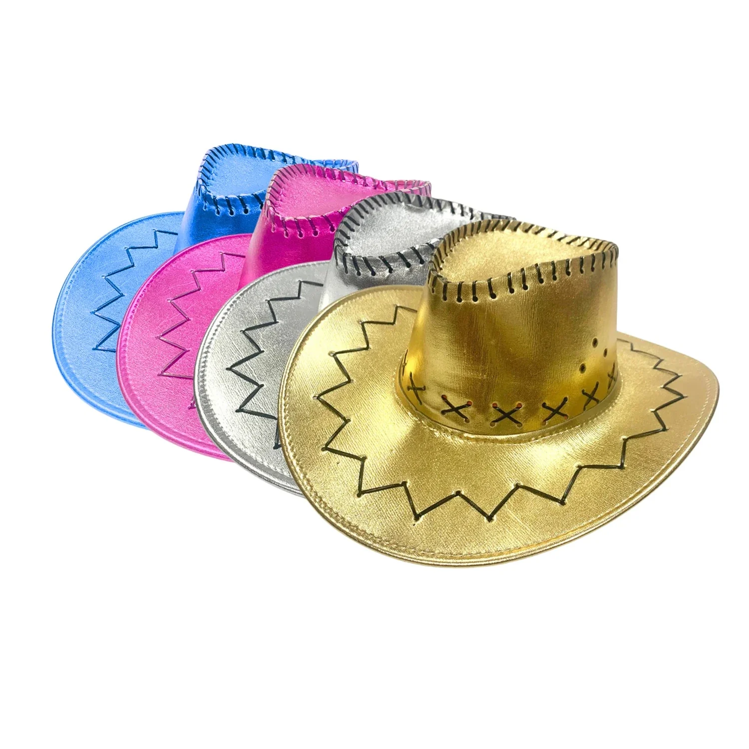 El Sombrero Vaquero Metalizado/Color a Elección es el accesorio ideal para darle un toque audaz y llamativo a tus celebraciones o atuendos temáticos. Con su acabado brillante, es perfecto para destacar en cualquier evento especial.
