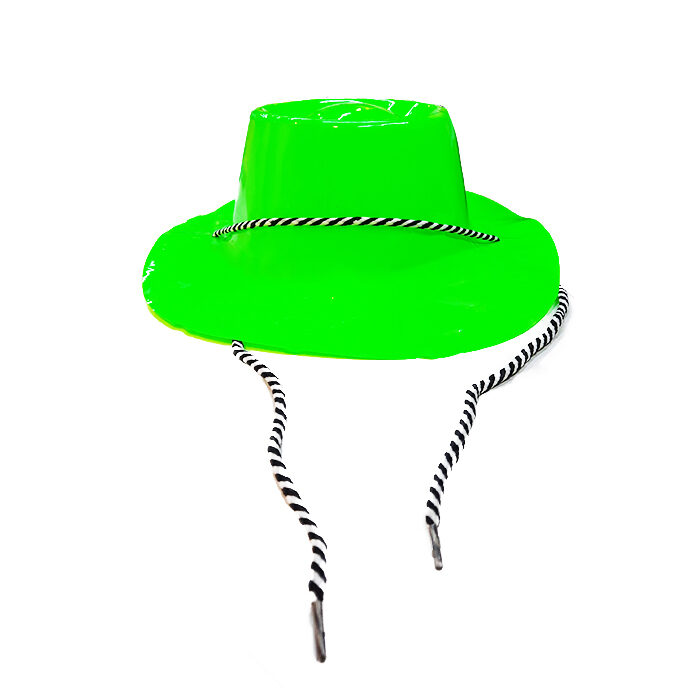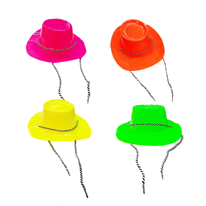 El Sombrero Vaquero Plástico Fluo es el accesorio perfecto para destacar en fiestas, eventos temáticos o celebraciones llenas de color y diversión. Su diseño llamativo y brillante añade un toque único a cualquier look festivo.