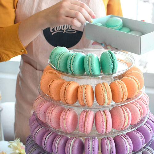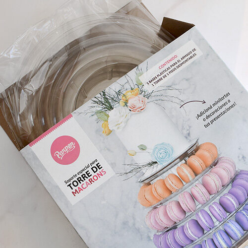 Soporte plástico de 5 pisos desmontables, especial para crear torre de macarons o alfajores.