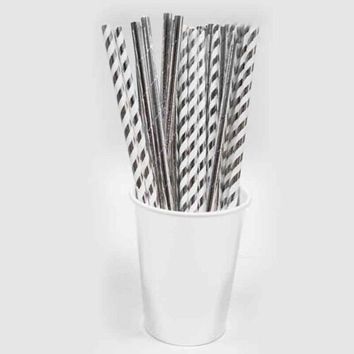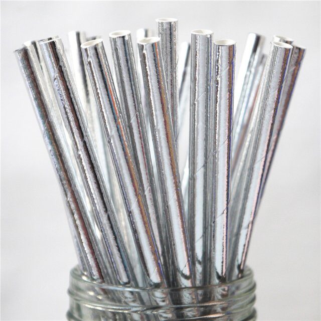 ✨ Sorbetes de Polipapel Plateados Metalizados x24 – Elegancia y brillo para tus bebidas