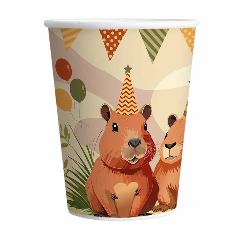 Vasos Polipapel Carpincho Capibara x8 – ¡Ternura en cada sorbo!