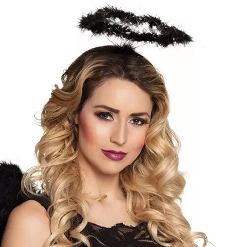 Con su diseño elegante y delicado, esta vincha presenta una aureola de ángel en color negro que te hará sentir como una criatura celestial. Es ideal para fiestas de Halloween, carnavales, fiestas temáticas o cosplay, donde podrás lucir un look angelical y misterioso.