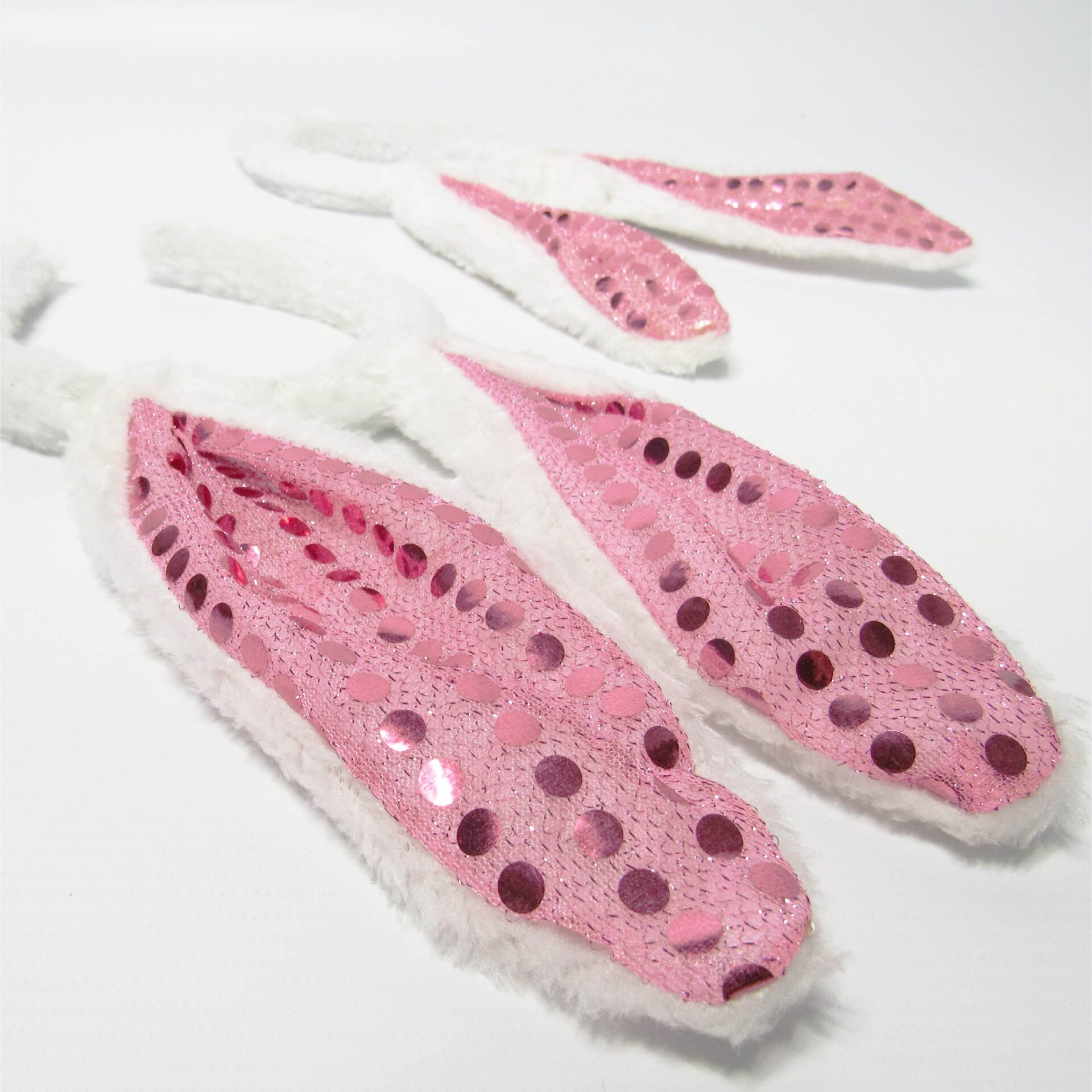 Material: Vincha plástica forrada con tela blanca peluche + orejas rosadas con lentejuelas