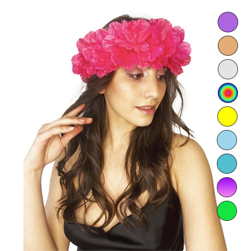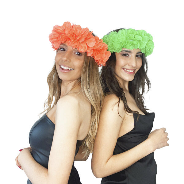 La vincha flores presenta grandes flores fluo de tela que capturan la esencia de las fiestas tropicales. Suave, colorida y muy vistosa, es el accesorio ideal para tu próximo evento.